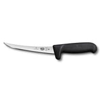Victorinox Fibrox boning knife with a narrow, flexible 15 cm blade and a black, finger-protected, non-slip ergonomic plastic handle.