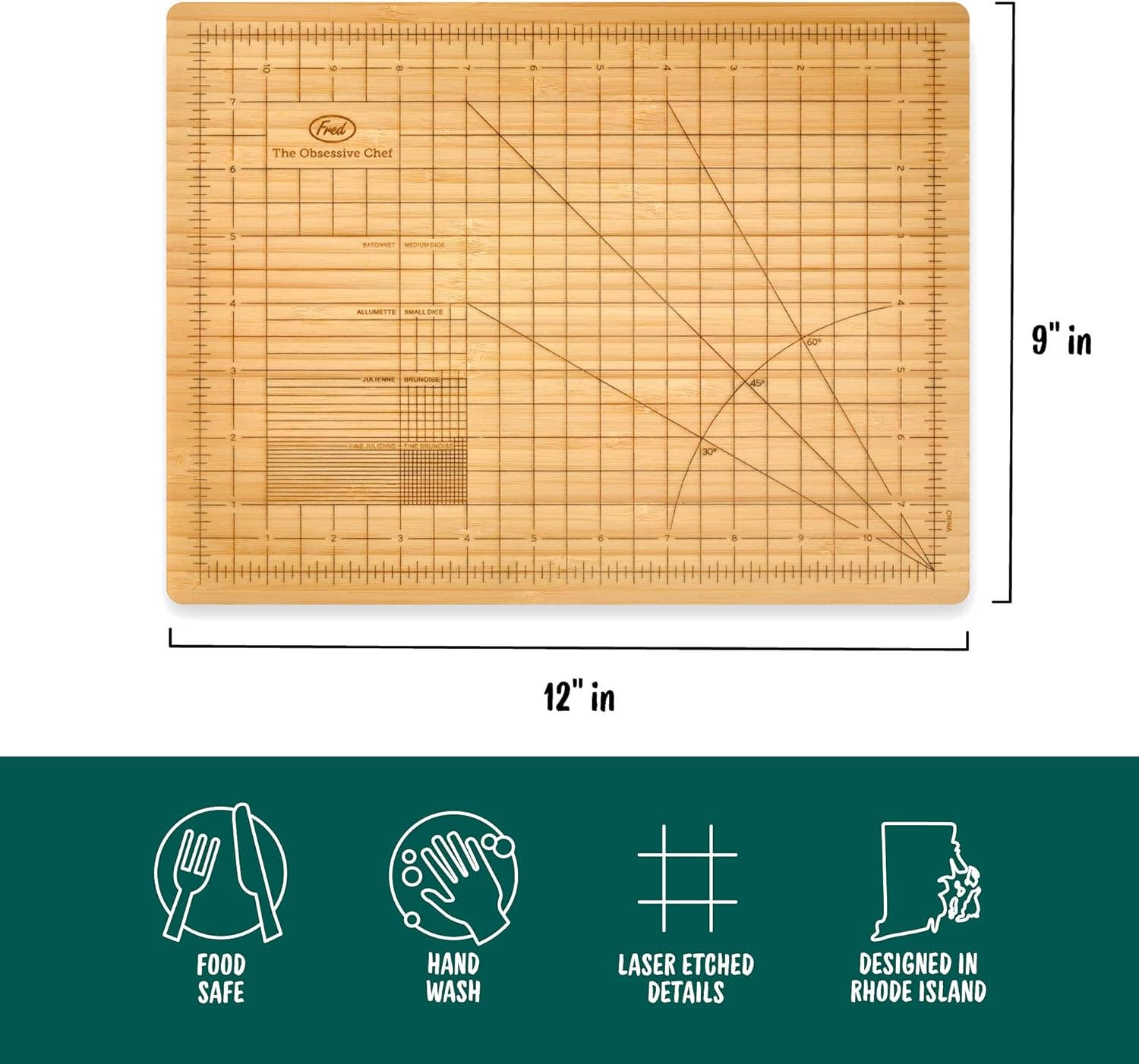Pak je Obsessive Chef přesně pro vás. Toto prkénko z odolného bambusu je potištěno přesnými měřítky, úhly a vodítky pro ty nejdokonalejší kostičky a proužky.