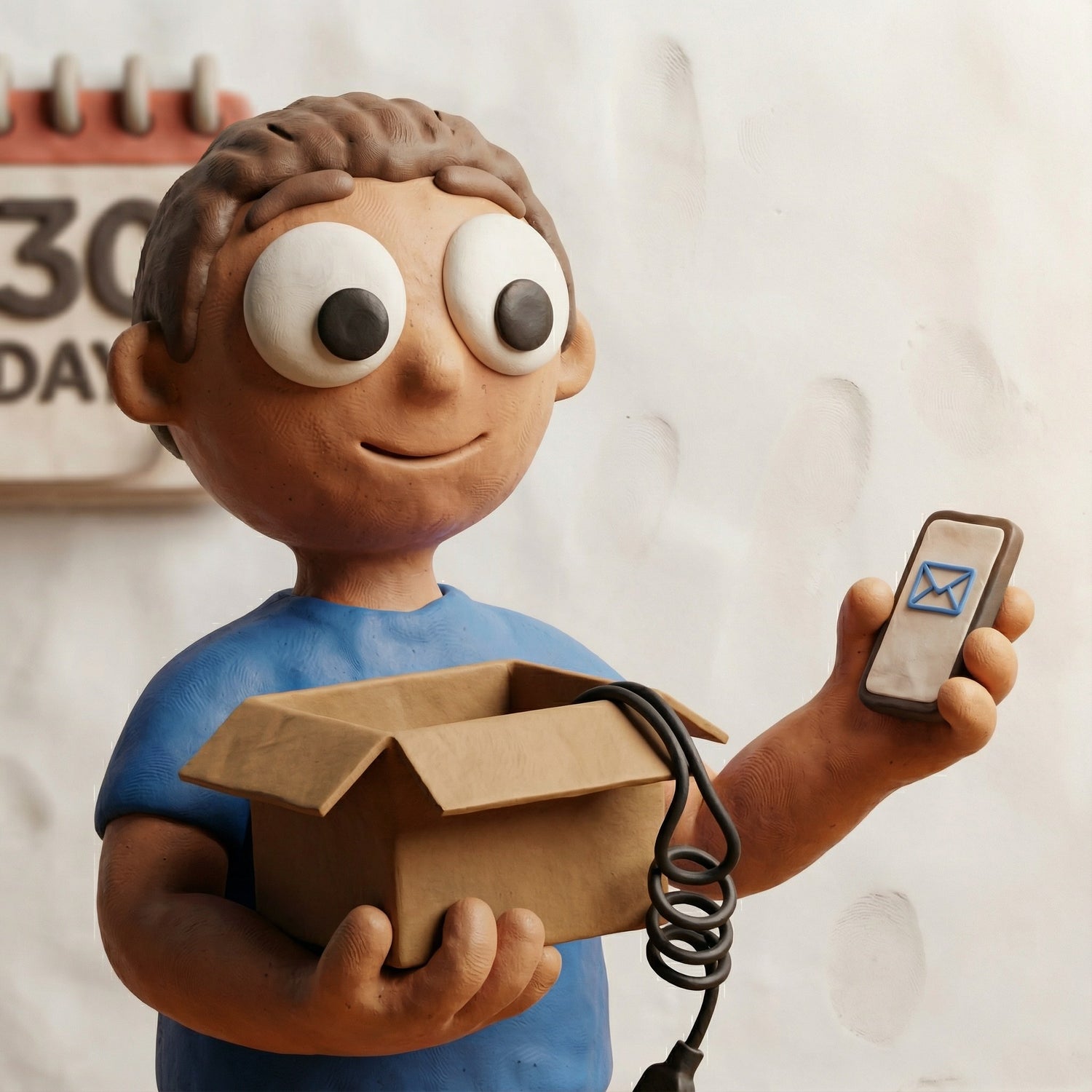 Starting a return is easy — just click the return link in your delivery confirmation email, or just write to us. No complicated forms, no hassle.