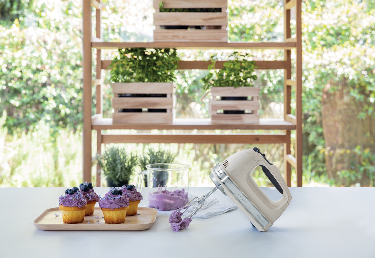The KitchenAid 9 speed hand mixer 5KHM9212 may be small, but it gives big results. Designed by the #1 MIXER BRAND IN THE WORLD ⁽¹⁾ and as versatile as a stand mixer, it helps you make anything from delicious weekday dishes to elaborate menus for entertaining.