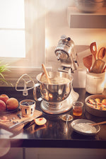The KitchenAid stand mixer was the original home food mixer to feature unique ‘planetary action’. What does this mean? It means that the beater shaft turns one way and the attachments spiral in the other direction to at least 59 touchpoints around the bowl. Everything you throw in will be fully incorporated - nothing is missed! From mixing cake batter to kneading pasta dough, whipping cream or shredding chicken.