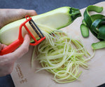 The peeler is equipped with two blades: the first is micro-serrated and designed to peel any type of vegetable: carrots, cucumbers, pumpkins, etc. As perfect for thin as for hard skin!
