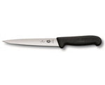 Victorinox Fibrox Filleting knife with flexible 18 cm blade and black non-slip, ergonomic plastic handle.