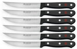 Wüsthof 9728 – Gourmet 6-piece Steak Knife Set with straight edge 12 cm blade and black plastic handle.