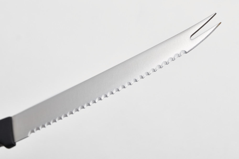 - Tomato knife - The finely serrated edge of the tomato knife smoothly cuts through the firm tomato skin, while the split tip lifts the slices. The knife is also suitable for cheese and fruit.